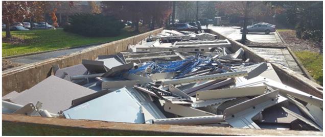 Electromek’s warehouse supervisor and our team of support personnel take time to separate a majority, if not all, of the decommissioned equipment we remove from medical facilities. Systems are hauled to our office in Troy, IL where we divide components into different bins before recycling and disposing.