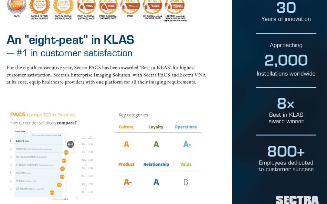 To review Sectra’s KLAS performance data and read comments from its customers, please visit klasresearch.com.