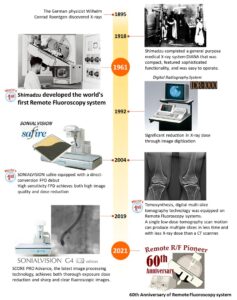 This year 2021 marks the 60th anniversary of the birth of the Remote-controlled Fluoroscopy Table system, which was developed by Shimadzu Corporation for the first time in the world in 1961.