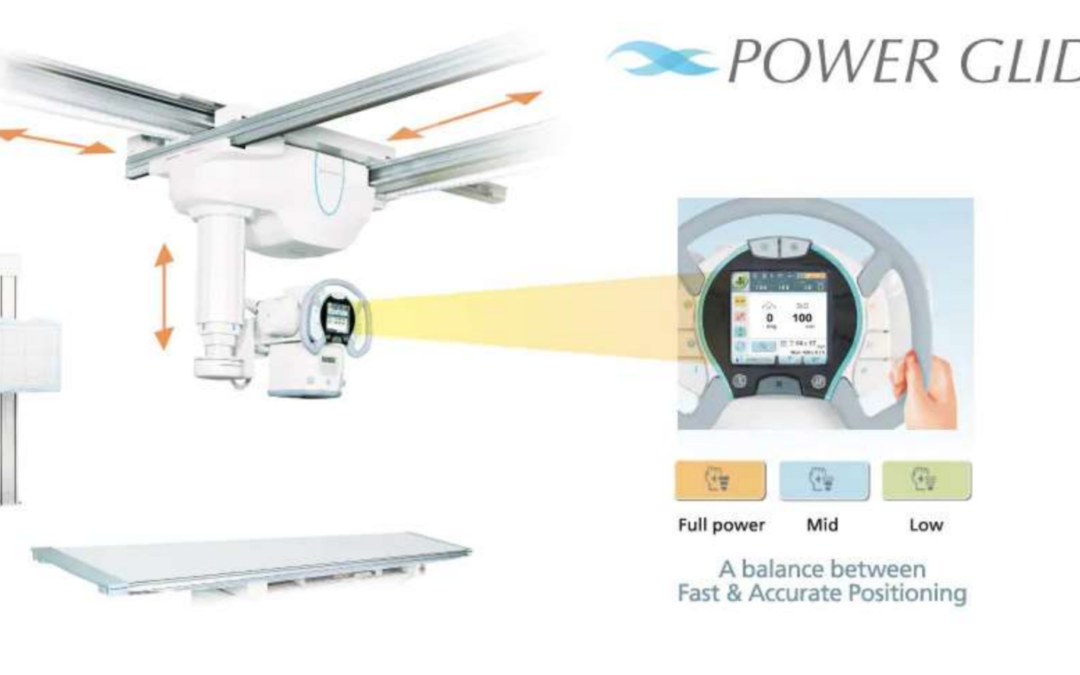 Operating the X-ray tube support involves moving the assembly along ceiling rails but due to the operator’s risk of shoulder or lower back pain, there is a need to reduce the burden on operators. Reducing operating loads and enabling a smoother workflow would also shorten the time that patients must maintain a particular body position during examinations.